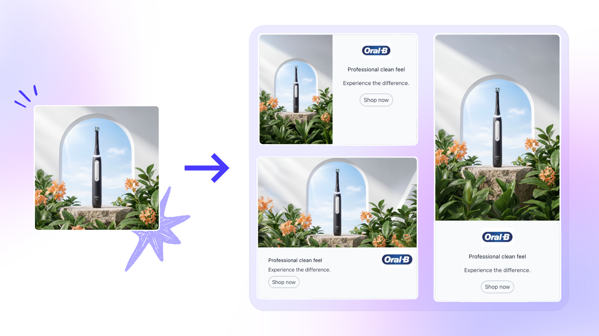 Turn static creatives into motion-ready video content. Adapt visuals for social, display, and retail media formats.